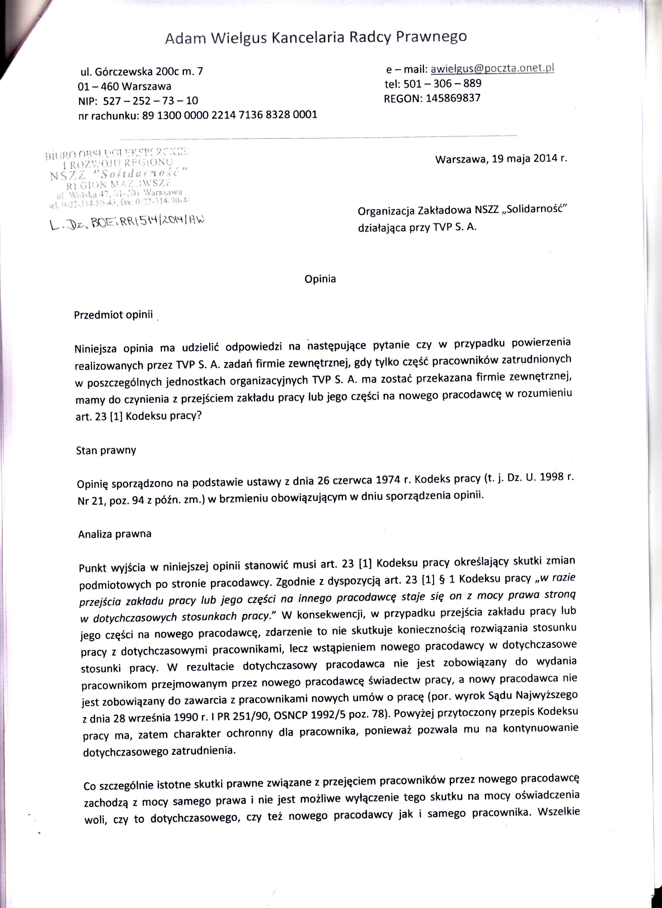 STANOWISKO KOMISJI ZAKŁADOWEJ NSZZ „SOLIDARNOŚĆ” TVP S.A.