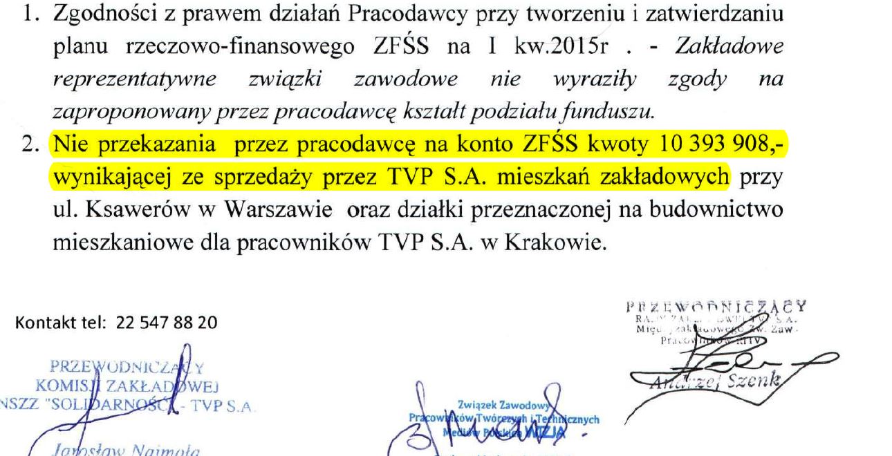LIST OTWARTY PRZEWODNICZĄCEGO NSZZ SOLIDARNOŚĆ TVP S.A. DO WŁADZ SPÓŁKI