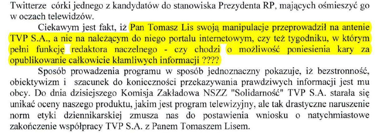 Obrady Rady Krajowego Sekretariatu Kultury i Środków Przekazu NSZZ Solidarność w siedzibie NSZZ Solidarności TVP S.A. | WESOŁYCH ŚWIĄT ŻYCZY KOMISJA ZAKŁADOWA NSZZ „SOLIDARNOŚĆ” TVP S.A. | komentarz: Nowa Umowa Opieki Medycznej | Dodatek świąteczny | TVP S.A. – KADRY INFORMUJĄ „Opieka medyczna dla pracowników i współpracowników” | „Polska znalazłaby się na 26. miejscu wśród 30 krajów europejskich pod względem inwestycji w media publiczne”. Media publiczne „w krytycznym stanie”. EBU apeluje do polskiego rządu | STANOWISKO KOMISJI ZAKŁADOWEJ NSZZ „SOLIDARNOŚĆ” TVP S.A. | Szef „Solidarności” odpowiada ministrze. Pracownicy TVP „obywatelami drugiej kategorii”? | Świadczenie świąteczne | Ministra kultury „Media publiczne pozostaną w likwidacji” | TVP na razie bez likwidacji kanałów. „Niedopuszczalne prawnie” | Europejskie organizacje apelują do polskiego rządu ws. finansowania mediów publicznych | Wielkopolska „Solidarność” nawołuje do przyspieszenia uregulowania sytuacji w mediach publicznych | SYTUACJA PRACOWNIKÓW W MEDIACH PUBLICZNYCH – audycja: Skazani na dialog – 27.09.2025 | SPAŁA 11-12 września: spotkanie struktur NSZZ Solidarność – Sekretariatu Kultury i Środków Przekazu i Rady Sekcji Pracowników Radia | Pierwsze Statuetki 45-lecia NSZZ „Solidarność” Regionu Mazowsze rozdane. Wśród laureatów wyróżnienia znaleźli się przedstawiciele NSZZ „Solidarność” TVP S.A. | Spotkanie z rodakami z Litwy | masz toksycznego szefa? jak radzić sobie z toksycznym szefem? | Przewodniczący NSZZ „Solidarność” Regionu Mazowsze Dariusz Paczuski w Radiu WNET | Co dalej ze stanem likwidacji w TVP. Nadal nie ma decyzji i działań. Rząd wciąż zwleka i odkłada decyzje w sprawie TVP na które wyczekują nie tylko pracownicy spółki. | OKIEM PRACOWNIKÓW „Za chwilę będziemy zarabiać jak pani w Żabce” | CO O NAS PISZĄ? | O CZYM SZUMIĄ MEDIA: TVP po wyborach prezydenckich – Czy TVP wyjdzie ze stanu likwidacji? Czy zakup praw do „Ligii Mistrzów” będzie ofiarą w sporze politycznym? | ODBYŁY SIĘ SZKOLENIA 06-08 MAJA | Obrady Komisja Krajowej i Krajowego Zjazdu Delegatów w Kołobrzegu | SAVOY W SPALE – WAKACYJNA OFERTA DLA CZŁONKÓW NSZZ SOLIDARNOŚĆ | XXXVI MIEDZYNARODOWY WYŚCIG KOLARSKI „SOLIDARNOŚCI” I OLIMPIJCZYKÓW W TELEWIZJI POLSKIEJ | WIELKANOC – WNIOSEK O PRZYZNANIE ŚWIADCZENIA ŚWIĄTECZNEGO | Władze Telewizji Polskiej zostały wybrane w sposób bezsprzecznie legalny i prawidłowy – wynika z pisemnego uzasadnienia wyroku sądu, które opublikowała Telewizja Polska | w piątek 7 lutego odbył się Protest NSZZ Solidarność podczas wizyty Komisji Europejskiej w Gdańsku | SZKOLENIE – z zakresu Ustawy o sygnalistach | Spotkanie struktur branżowych NSZZ Solidarności, przedstawicieli sekretariatów i sekcji branżowych z Prezydium Komisji Krajowej NSZZ Solidarność | O CZYM SZUMIA MEDIA : Rada Mediów Narodowych – media publiczne – proces likwidacyjny spółek | STANOWISKO ZARZADU REGIONU MAZOWSZE NSZZ „SOLIDARNOŚĆ” W SPRAWIE PLANÓW PRZYSZŁOŚCI TVP | O CZYM SZUMIĄ MEDIA CZYLI co o TVP się mówi? | KONSULTACJE ws ZMIAN W REGULAMINIE WYNAGRADZANIA | Stanowisko Rady KSKiŚP NSZZ „Solidarność” w sprawie prac nad ustawą medialną | Solidarni z ofiarami powodzi | TVP: „Moja i twoja nadzieja” ku pokrzepieniu oraz 2 mln zł na wsparcie ofiar powodzi od #RazemDlaWas | KRRiTV przekaże środki należne TVP. Zmiana decyzji z powodzią w tle i stawianiem warunków. | „RAZEM DLA WAS” TELEWIZJA POLSKA DLA POWODZIAN | O CZYM SZUMIĄ MEDIA – czyli o TVP mówi się… | PODZIĘKOWANIA OD POLSKICH DZIECI Z LITWY | FINANSOWANIE MEDIÓW PUBLICZNYCH – audycja „Skazani na dialog” z 06.07.2024 | SPAŁA 20-22 CZREWCA: wspólne posiedzenia struktur związkowych, spotkania z władzami związku, szkolenia integracja. | KRZYŻ WOLNOŚCI I SOLIDARNOŚCI DLA MARII JESIONKIEWICZ | TRZECIE POSTANOWIENIE SĄDU ODMAWIAJĄCE PRZEKAZANIA, NA WNIOSEK KRRiTV, DO DEPOZYTU ŚRODKÓW NALEŻNYCH TELEWIZJI PUBLICZNEJ | XXXV MIEDZYNARODOWY WYŚCIG KOLARSKI „SOLIDARNOŚCI” I OLIMPIJCZYKÓW | DZIAŁANIA STRUKTUR ZWIAZKU W KWESTII FINANSOWANIA MEDIÓW PUBLICZNYCH. | WAŻNE: ROZWIĄZANIE UMOWY ZA POROZUMIENIEM – CZY I DLA KOGO TO WYGODNE ROZSTANIE? MOŻE JEDNAK TO PROPOZYCJA NIE DO ODRZUCENIA TYLKO DLA PRACOWNIKA? | Koniec prawnych wątpliwości wokół legalności władz telewizji publicznej? | PRACODAWCA ZAPRASZA DO DIALOGU ORGANIZACJE ZWIĄZKOWE | KOMUNIKAT : SPOTKANIE WŁADZ SPÓŁKI Z PRZEDSTAWICIELAMI NSZZ SOLIDARNOŚĆ TVP S.A. | WAŻNE DONIESIENIA I ODDŹWIĘK MEDIALNY: | LIST OTWARTY PRZEWODNICZĄCEGO NSZZ SOLIDARNOŚĆ TVP S.A. DO WŁADZ SPÓŁKI | Brak zdecydowanych działań Pracodawcy w kwestii poprawy sytuacji pracowników | Krajowa Sekcja Pracowników Radia i Telewizji NSZZ Solidarność | TVP S.A. W MEDIACH | WAŻNE DONIESIENIA MEDIALNE: FINANSE – DECYZJE – LIKWIDACJA – ZMIANY – PODATKI | SZKOLENIA | KONTROLA | INFORMACJA DLA EMERYTÓW | REPREZENTATYWNOŚĆ | STANOWISKO: W SPRAWIE SYTUACJI PRACOWNIKÓW I WSPÓŁPRACOWNIKÓW TVP S.A. | APEL w sprawie finansowania mediów publicznych | sytuacja w TVP – wywiad | Wywiad z Przewodniczącym KSPRiTV, KSKiŚP Wiesławem Murzynem | Artykuł na stronie tygodnika NSZZ Region Mazowsze „Solidarność” i w „Tygodniku Solidarność” | Stanowisko Krajowego Sekretariatu Kultury i Środków Przekazu NSZZ „Solidarność” | Oświadczenie Przewodniczącego NSZZ Solidarność Piotra Dudy i Stanowisko Przewodniczącego NSZZ Solidarność Regionu Mazowsze Dariusza Paczuskiego oraz stanowisko Krajowej Sekcji Pracowników Radia i Telewizji NSZZ Solidarność | KOMUNIKAT