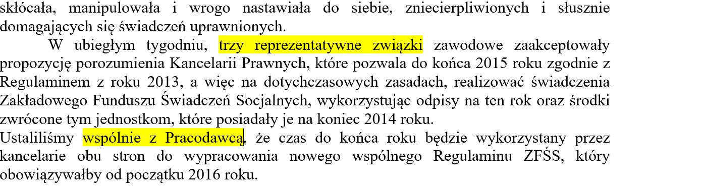 Obrady Rady Krajowego Sekretariatu Kultury i Środków Przekazu NSZZ Solidarność w siedzibie NSZZ Solidarności TVP S.A. | WESOŁYCH ŚWIĄT ŻYCZY KOMISJA ZAKŁADOWA NSZZ „SOLIDARNOŚĆ” TVP S.A. | komentarz: Nowa Umowa Opieki Medycznej | Dodatek świąteczny | TVP S.A. – KADRY INFORMUJĄ „Opieka medyczna dla pracowników i współpracowników” | „Polska znalazłaby się na 26. miejscu wśród 30 krajów europejskich pod względem inwestycji w media publiczne”. Media publiczne „w krytycznym stanie”. EBU apeluje do polskiego rządu | STANOWISKO KOMISJI ZAKŁADOWEJ NSZZ „SOLIDARNOŚĆ” TVP S.A. | Szef „Solidarności” odpowiada ministrze. Pracownicy TVP „obywatelami drugiej kategorii”? | Świadczenie świąteczne | Ministra kultury „Media publiczne pozostaną w likwidacji” | TVP na razie bez likwidacji kanałów. „Niedopuszczalne prawnie” | Europejskie organizacje apelują do polskiego rządu ws. finansowania mediów publicznych | Wielkopolska „Solidarność” nawołuje do przyspieszenia uregulowania sytuacji w mediach publicznych | SYTUACJA PRACOWNIKÓW W MEDIACH PUBLICZNYCH – audycja: Skazani na dialog – 27.09.2025 | SPAŁA 11-12 września: spotkanie struktur NSZZ Solidarność – Sekretariatu Kultury i Środków Przekazu i Rady Sekcji Pracowników Radia | Pierwsze Statuetki 45-lecia NSZZ „Solidarność” Regionu Mazowsze rozdane. Wśród laureatów wyróżnienia znaleźli się przedstawiciele NSZZ „Solidarność” TVP S.A. | Spotkanie z rodakami z Litwy | masz toksycznego szefa? jak radzić sobie z toksycznym szefem? | Przewodniczący NSZZ „Solidarność” Regionu Mazowsze Dariusz Paczuski w Radiu WNET | Co dalej ze stanem likwidacji w TVP. Nadal nie ma decyzji i działań. Rząd wciąż zwleka i odkłada decyzje w sprawie TVP na które wyczekują nie tylko pracownicy spółki. | OKIEM PRACOWNIKÓW „Za chwilę będziemy zarabiać jak pani w Żabce” | CO O NAS PISZĄ? | O CZYM SZUMIĄ MEDIA: TVP po wyborach prezydenckich – Czy TVP wyjdzie ze stanu likwidacji? Czy zakup praw do „Ligii Mistrzów” będzie ofiarą w sporze politycznym? | ODBYŁY SIĘ SZKOLENIA 06-08 MAJA | Obrady Komisja Krajowej i Krajowego Zjazdu Delegatów w Kołobrzegu | SAVOY W SPALE – WAKACYJNA OFERTA DLA CZŁONKÓW NSZZ SOLIDARNOŚĆ | XXXVI MIEDZYNARODOWY WYŚCIG KOLARSKI „SOLIDARNOŚCI” I OLIMPIJCZYKÓW W TELEWIZJI POLSKIEJ | WIELKANOC – WNIOSEK O PRZYZNANIE ŚWIADCZENIA ŚWIĄTECZNEGO | Władze Telewizji Polskiej zostały wybrane w sposób bezsprzecznie legalny i prawidłowy – wynika z pisemnego uzasadnienia wyroku sądu, które opublikowała Telewizja Polska | w piątek 7 lutego odbył się Protest NSZZ Solidarność podczas wizyty Komisji Europejskiej w Gdańsku | SZKOLENIE – z zakresu Ustawy o sygnalistach | Spotkanie struktur branżowych NSZZ Solidarności, przedstawicieli sekretariatów i sekcji branżowych z Prezydium Komisji Krajowej NSZZ Solidarność | O CZYM SZUMIA MEDIA : Rada Mediów Narodowych – media publiczne – proces likwidacyjny spółek | STANOWISKO ZARZADU REGIONU MAZOWSZE NSZZ „SOLIDARNOŚĆ” W SPRAWIE PLANÓW PRZYSZŁOŚCI TVP | O CZYM SZUMIĄ MEDIA CZYLI co o TVP się mówi? | KONSULTACJE ws ZMIAN W REGULAMINIE WYNAGRADZANIA | Stanowisko Rady KSKiŚP NSZZ „Solidarność” w sprawie prac nad ustawą medialną | Solidarni z ofiarami powodzi | TVP: „Moja i twoja nadzieja” ku pokrzepieniu oraz 2 mln zł na wsparcie ofiar powodzi od #RazemDlaWas | KRRiTV przekaże środki należne TVP. Zmiana decyzji z powodzią w tle i stawianiem warunków. | „RAZEM DLA WAS” TELEWIZJA POLSKA DLA POWODZIAN | O CZYM SZUMIĄ MEDIA – czyli o TVP mówi się… | PODZIĘKOWANIA OD POLSKICH DZIECI Z LITWY | FINANSOWANIE MEDIÓW PUBLICZNYCH – audycja „Skazani na dialog” z 06.07.2024 | SPAŁA 20-22 CZREWCA: wspólne posiedzenia struktur związkowych, spotkania z władzami związku, szkolenia integracja. | KRZYŻ WOLNOŚCI I SOLIDARNOŚCI DLA MARII JESIONKIEWICZ | TRZECIE POSTANOWIENIE SĄDU ODMAWIAJĄCE PRZEKAZANIA, NA WNIOSEK KRRiTV, DO DEPOZYTU ŚRODKÓW NALEŻNYCH TELEWIZJI PUBLICZNEJ | XXXV MIEDZYNARODOWY WYŚCIG KOLARSKI „SOLIDARNOŚCI” I OLIMPIJCZYKÓW | DZIAŁANIA STRUKTUR ZWIAZKU W KWESTII FINANSOWANIA MEDIÓW PUBLICZNYCH. | WAŻNE: ROZWIĄZANIE UMOWY ZA POROZUMIENIEM – CZY I DLA KOGO TO WYGODNE ROZSTANIE? MOŻE JEDNAK TO PROPOZYCJA NIE DO ODRZUCENIA TYLKO DLA PRACOWNIKA? | Koniec prawnych wątpliwości wokół legalności władz telewizji publicznej? | PRACODAWCA ZAPRASZA DO DIALOGU ORGANIZACJE ZWIĄZKOWE | KOMUNIKAT : SPOTKANIE WŁADZ SPÓŁKI Z PRZEDSTAWICIELAMI NSZZ SOLIDARNOŚĆ TVP S.A. | WAŻNE DONIESIENIA I ODDŹWIĘK MEDIALNY: | LIST OTWARTY PRZEWODNICZĄCEGO NSZZ SOLIDARNOŚĆ TVP S.A. DO WŁADZ SPÓŁKI | Brak zdecydowanych działań Pracodawcy w kwestii poprawy sytuacji pracowników | Krajowa Sekcja Pracowników Radia i Telewizji NSZZ Solidarność | TVP S.A. W MEDIACH | WAŻNE DONIESIENIA MEDIALNE: FINANSE – DECYZJE – LIKWIDACJA – ZMIANY – PODATKI | SZKOLENIA | KONTROLA | INFORMACJA DLA EMERYTÓW | REPREZENTATYWNOŚĆ | STANOWISKO: W SPRAWIE SYTUACJI PRACOWNIKÓW I WSPÓŁPRACOWNIKÓW TVP S.A. | APEL w sprawie finansowania mediów publicznych | sytuacja w TVP – wywiad | Wywiad z Przewodniczącym KSPRiTV, KSKiŚP Wiesławem Murzynem | Artykuł na stronie tygodnika NSZZ Region Mazowsze „Solidarność” i w „Tygodniku Solidarność” | Stanowisko Krajowego Sekretariatu Kultury i Środków Przekazu NSZZ „Solidarność” | Oświadczenie Przewodniczącego NSZZ Solidarność Piotra Dudy i Stanowisko Przewodniczącego NSZZ Solidarność Regionu Mazowsze Dariusza Paczuskiego oraz stanowisko Krajowej Sekcji Pracowników Radia i Telewizji NSZZ Solidarność | KOMUNIKAT