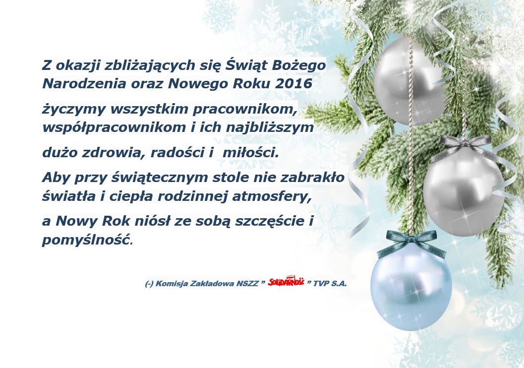 WESOŁYCH ŚWIĄT ŻYCZY KOMISJA ZAKŁADOWA NSZZ „SOLIDARNOŚĆ” TVP S.A.