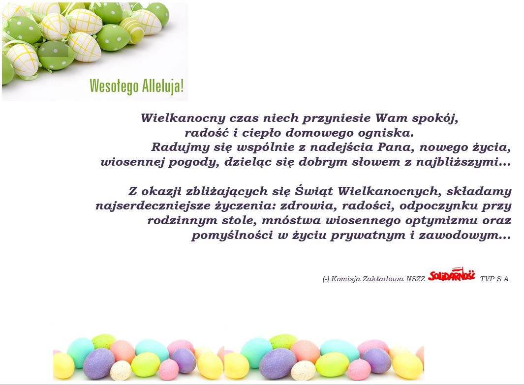 WESOŁYCH ŚWIĄT ŻYCZY KOMISJA ZAKŁADOWA NSZZ „SOLIDARNOŚĆ” TVP S.A.
